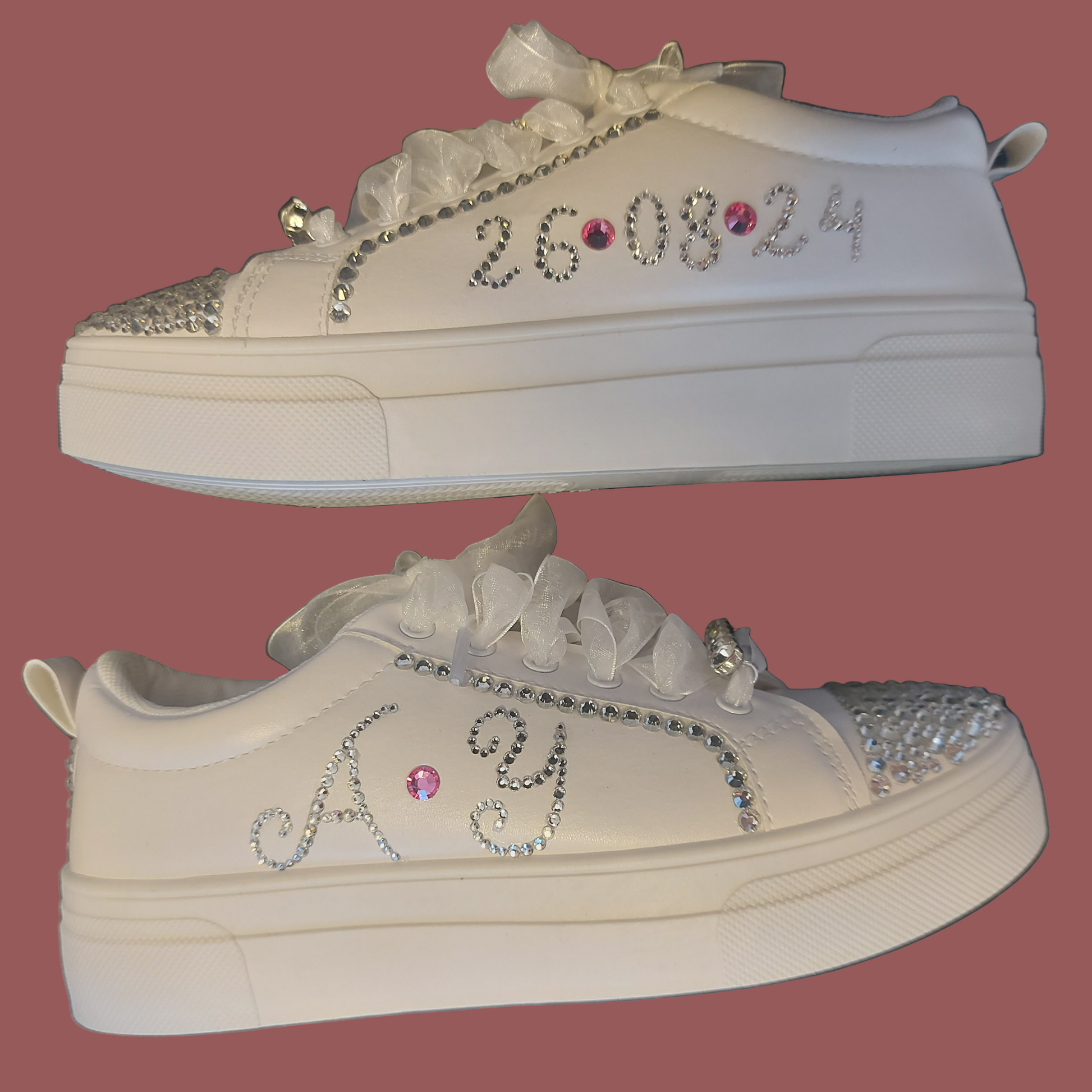 הסניקרס המרהיבות שלנו מעניקות לך מראה כלתי נוצץ עם נוחות בלתי מתפשרת. עיצוב בעבודת יד, עם פרטים מעודנים כמו אבני ריינסטון, תחרה או פנינים, וסטייל שלא מתפשר